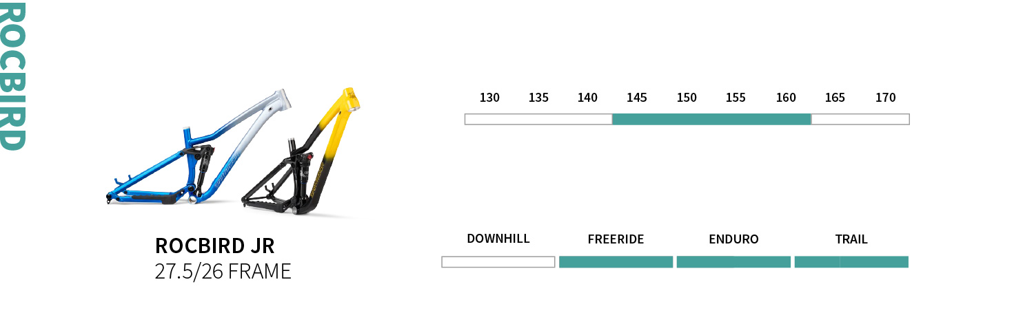 Für alle jungen Rider, die mehr wollen als ein Spielzeugbike: Das Rocbird Junior liefert echte Trail-Performance in kompakter Form. Egal ob erste Bikepark-Erfahrungen oder actionreiche Trailrunden – dieser Rahmen bringt alles mit, was ambitionierte Nachwuchsfahrer brauchen.